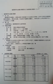 ここで、委員長、あらかじめ「福岡県学生会館の学生会館の概要 および 入館者数について」の資料を執行部に要求しておりますので、委員会配付のお取りはからいをお願いします。